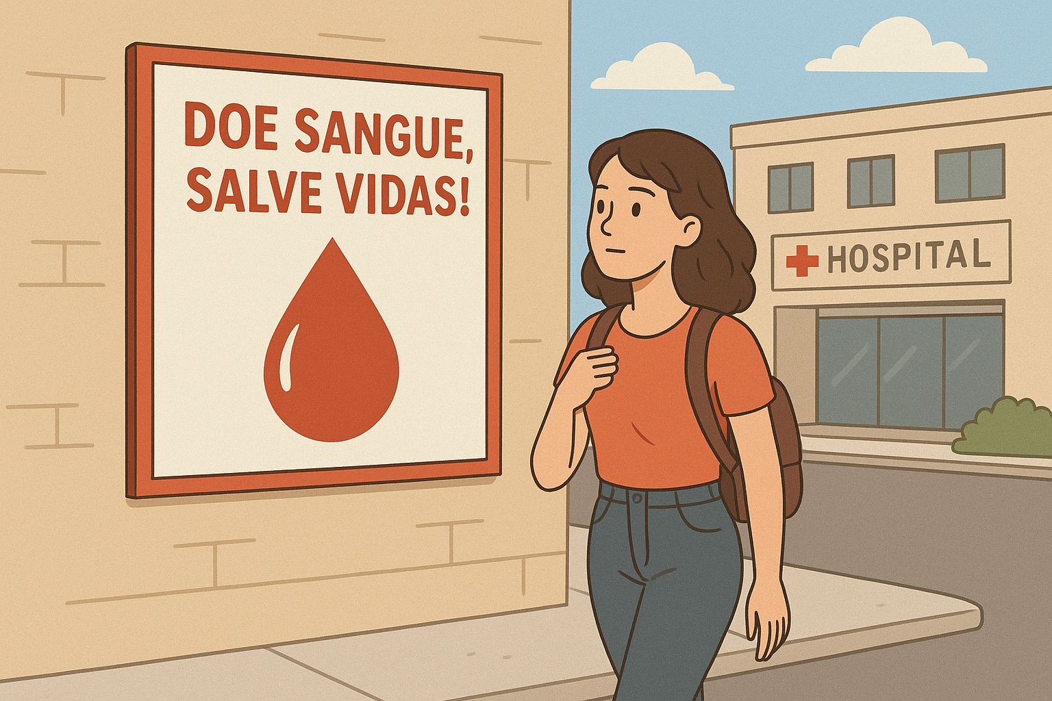 Ana caminhava pela rua numa tarde ensolarada.O vento suave acariciava seus cabelos, quando seus olhos se fixaram em um cartaz vermelho na parede do hospital: